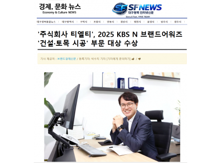 2025.12.29 | 대구경북인터넷뉴스, 2025 KBS N 브랜드어워즈 '건설·토목 시공' 부문 대상 수…