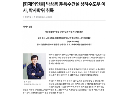 2019.03.05 | 워터저널, 박상봉 (주)특수건설 상하수도부 이사, 박사학위 취득