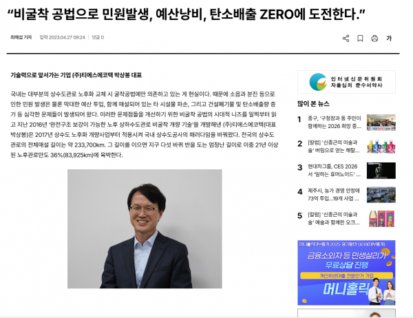 2023.04.27 | 비굴착 공법으로 민원발생, 예산낭비, 탄소배출 ZERO에 도전한다