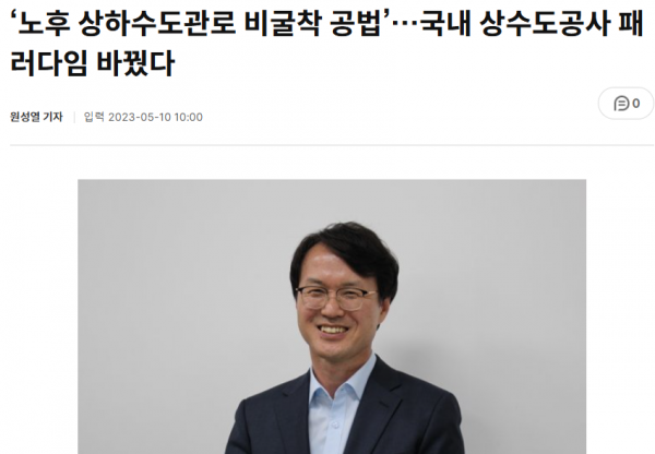 2023.05.10 | 스포츠동아, '노후 상하수도관로 비굴착 공법'... 국내 상수도공사 패러다임 바꿨다