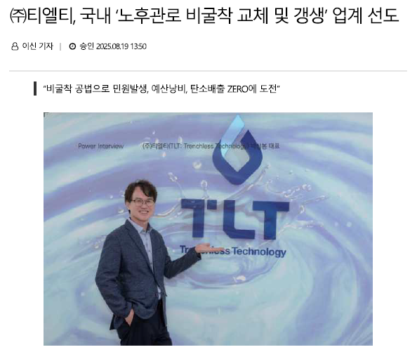 2025.08.19 | 종합시사매거진, 국내 '노후관로 비굴착 교체 및 갱생' 업계 선도