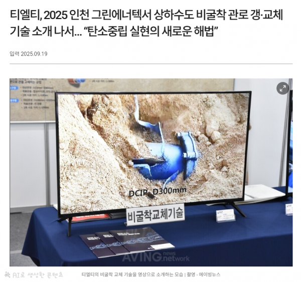 2025.09.19 | 에이빙, 티엘티 - 2025 인천 그린에너텍서 상하수도 비굴착 관로 갱·교체 기술 소개 나서… “탄소중…