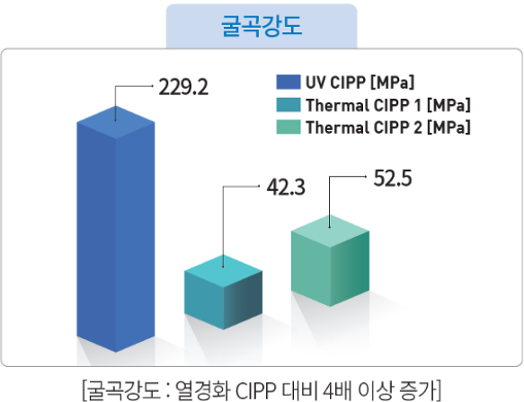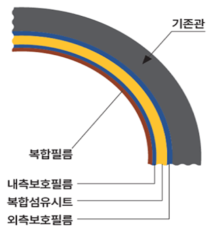 ∙ 자외선을 사용한 현장경화관 기술로 하수관 내부로 유리섬유 튜브라이너(UV수지+유리섬유튜브)를 견인 삽입 후 팽창